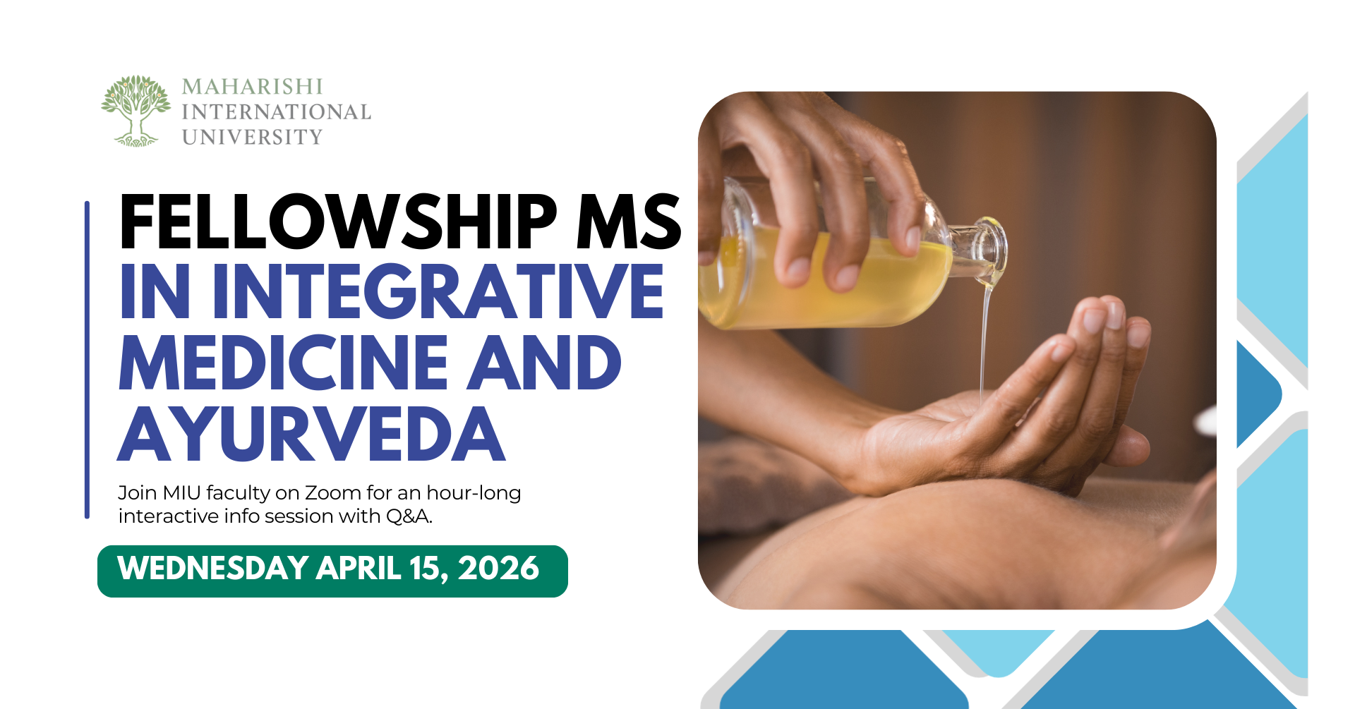 Join us for a live, small-group Zoom session with medical directors and program staff from Maharishi International University to explore the Fellowship M.S. in Integrative Medicine and Ayurveda, a fully accredited, two-year online program designed for licensed clinicians.