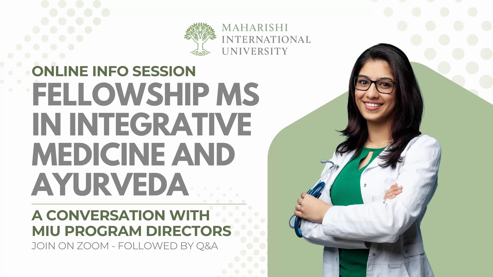 Join us for a live, small-group Zoom session with medical directors and program staff from Maharishi International University to explore the Fellowship M.S. in Integrative Medicine and Ayurveda, a fully accredited, two-year online program designed for licensed clinicians.